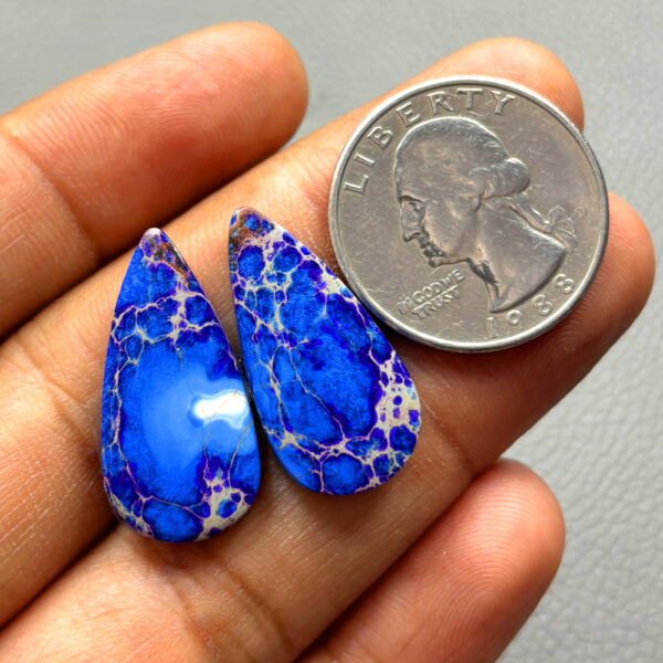 Blue Sea Sediment Jasper Pair Gemstone Size 26x13x04MM KG10249