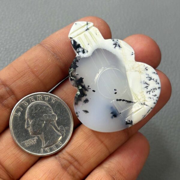 Dendrite Agate Carving Guitar Shape Gemstone Size 43x32x06mm KG10022