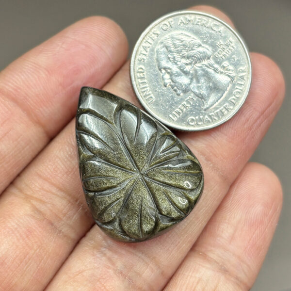 Gold Sheen Obsidian Carving Gemstone Size 31X22X06MM KG10008
