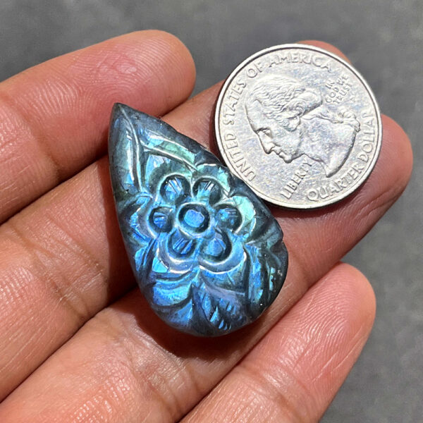 Labradorite Carving Gemstone Pear Size 30x20x07MM KG9877