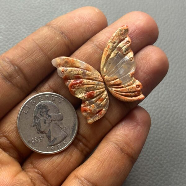 Rare Rainbow Jasper Butterfly Carving Gemstone Size 30x30x05MM KG9983