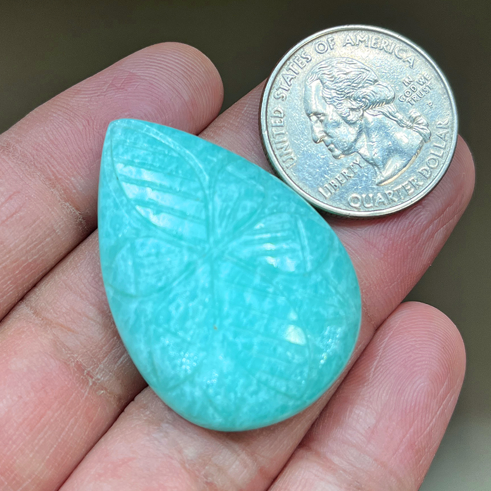 Amazonite Carving Gemstone Pear Size 40x27x08MM KG9911