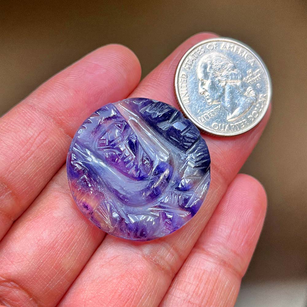 Fluorite Lord Ganesha Carving Gemstone Size 32X32X6MM KG9929