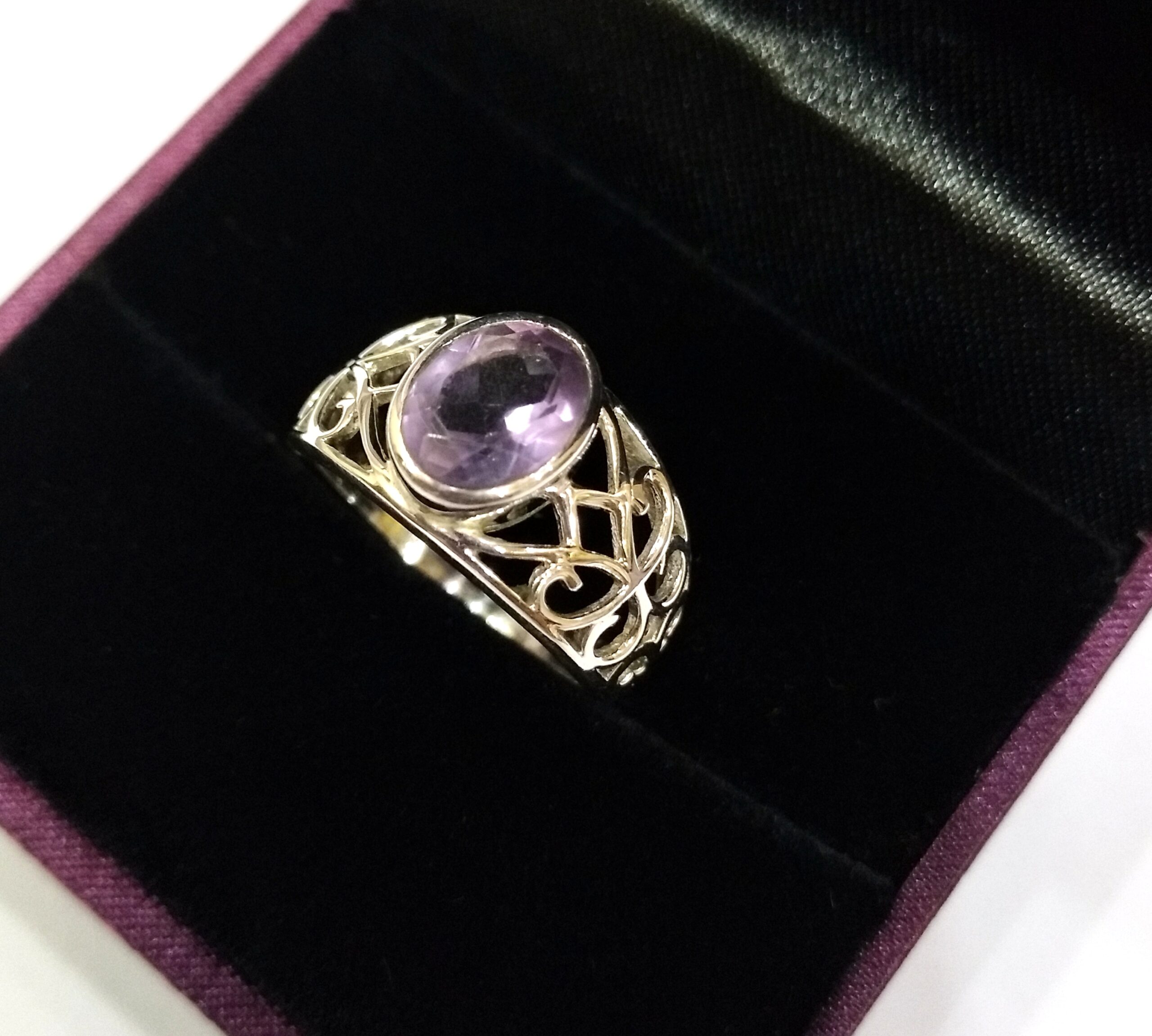 925 Sterling Solid Silver Ring With Amethyst